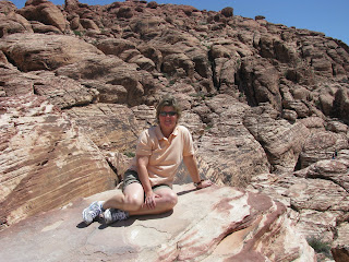 Below are a few pictures from our first sight seeing trip to Red Rock Canyon. We did a little climbing on the rocks and smaller canyons while we enjoyed the scenery and the very pleasant weather. The temperatures were in the mid 80's during the day and in the 60's at night. The last couple of times we have been in Vegas it was H.O.T. as in 115 degrees hot so this was very different for us. We have decided that our future visits will be in April from now on!